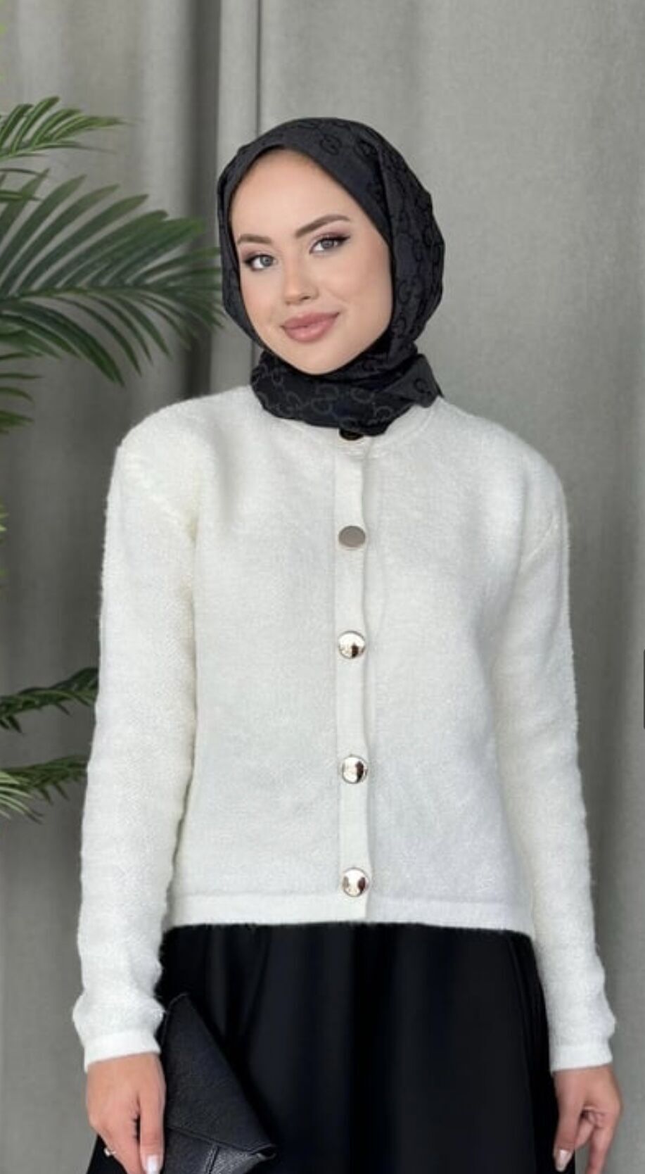 Düğmeli Puff Hırkamız Angora Kumaştan Üretilmiştir