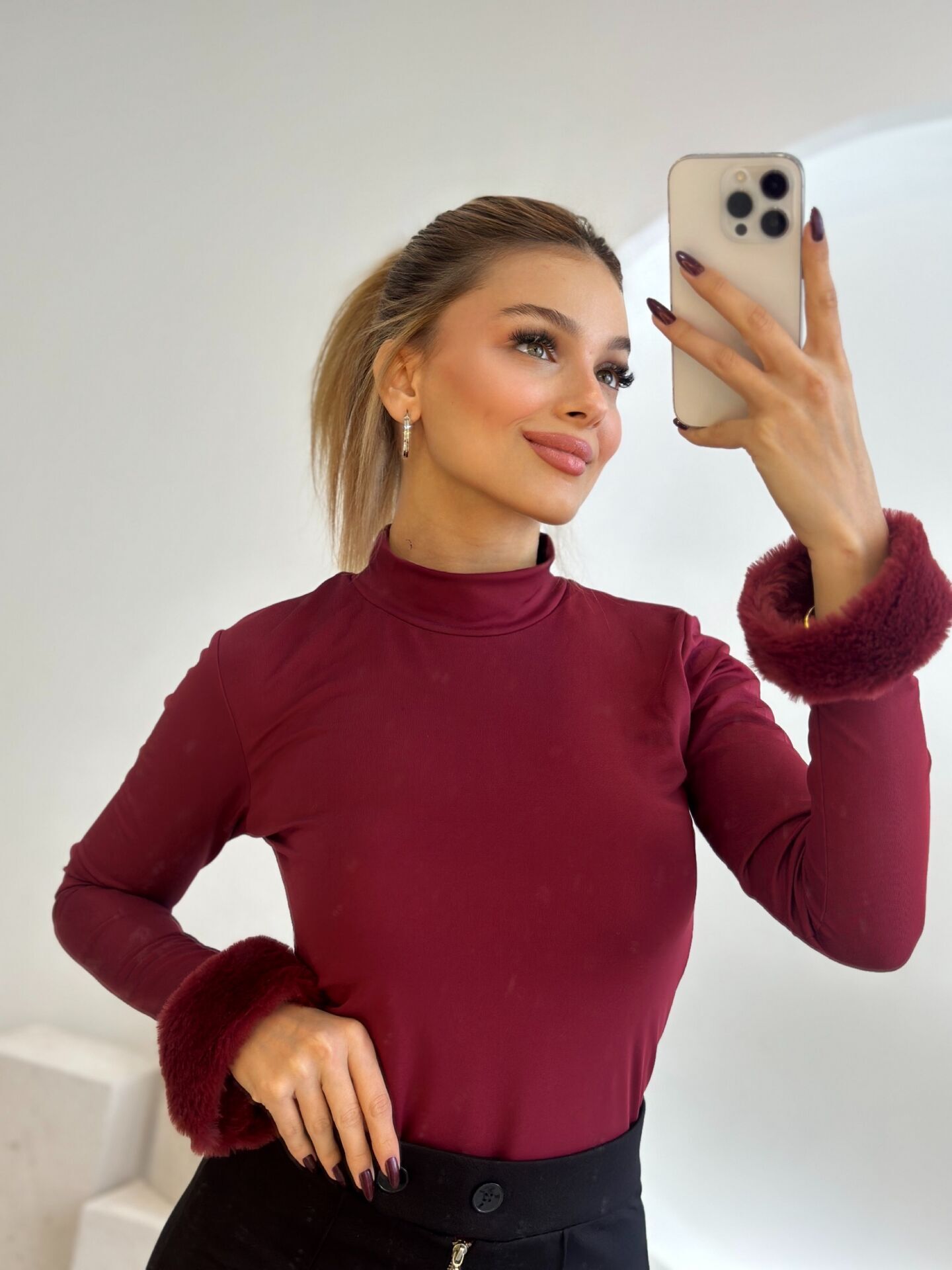 Ürün özellikleri : Likralıdır.Kollarındaki peluş detayları konbininize şıklık katacaktır .İster içlik ,ister kombin tamamlayıcısı olarak kullanabilirisniz