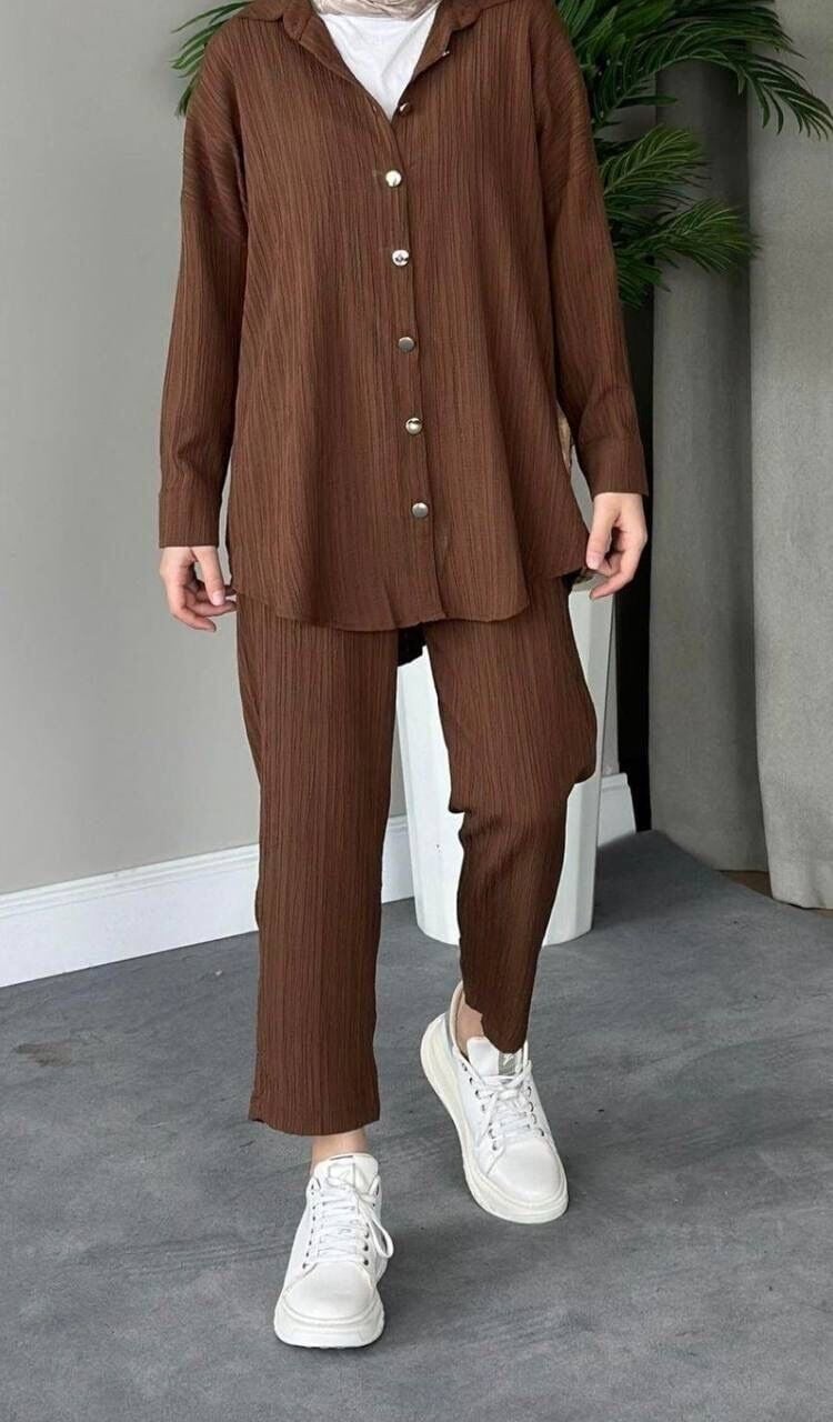 Önü Düğmeli Takımımız Müslin Kumaştan Üretilmiştir