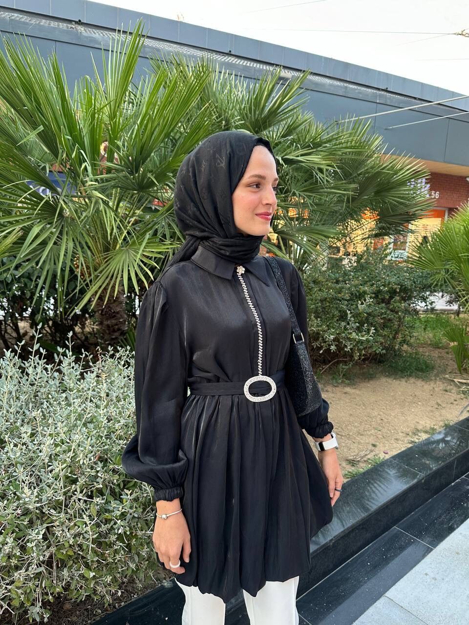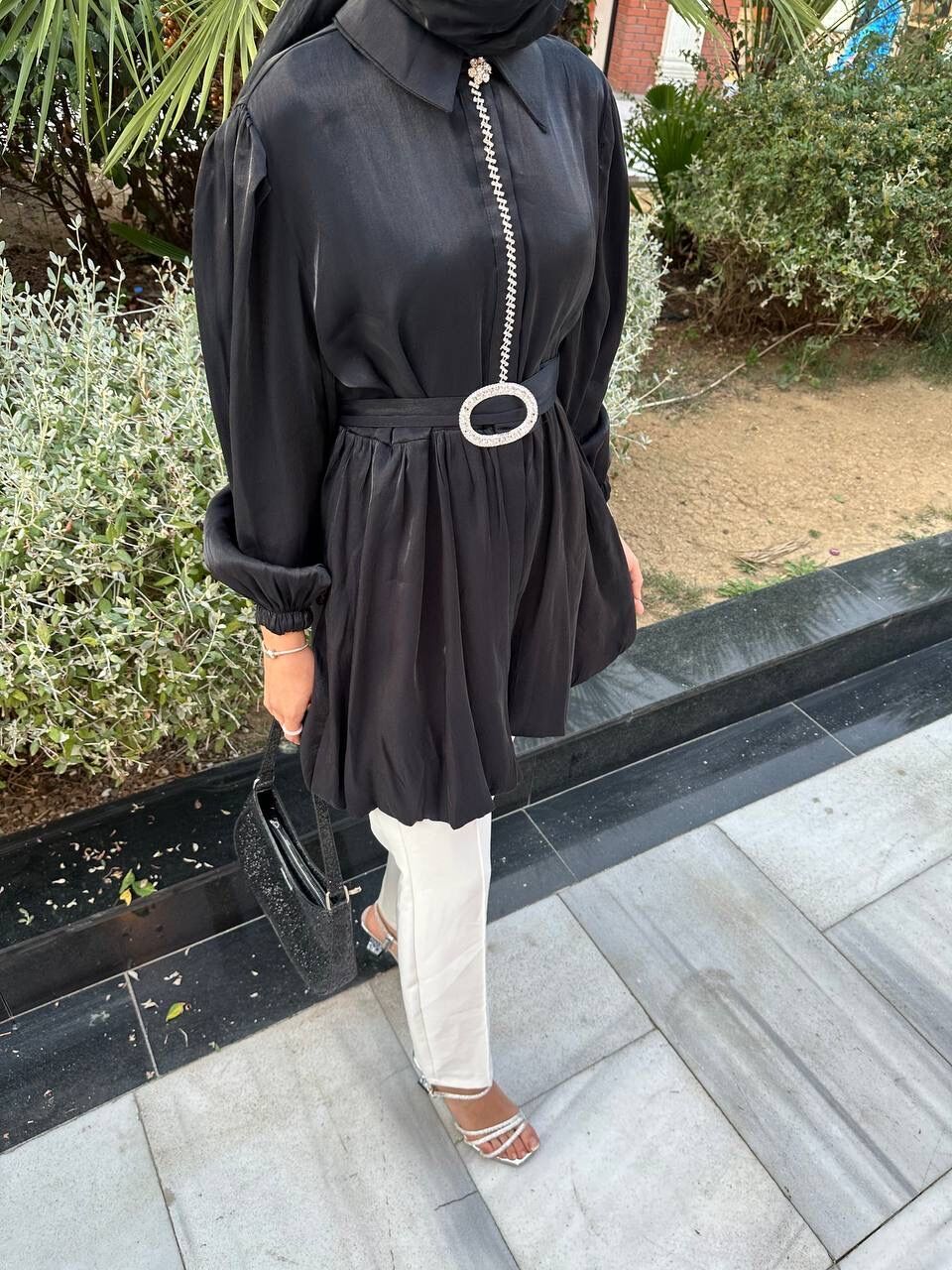 Önü Taşlı Tuniğimiz İpek Saten Kumaştan Üretilmiştir
